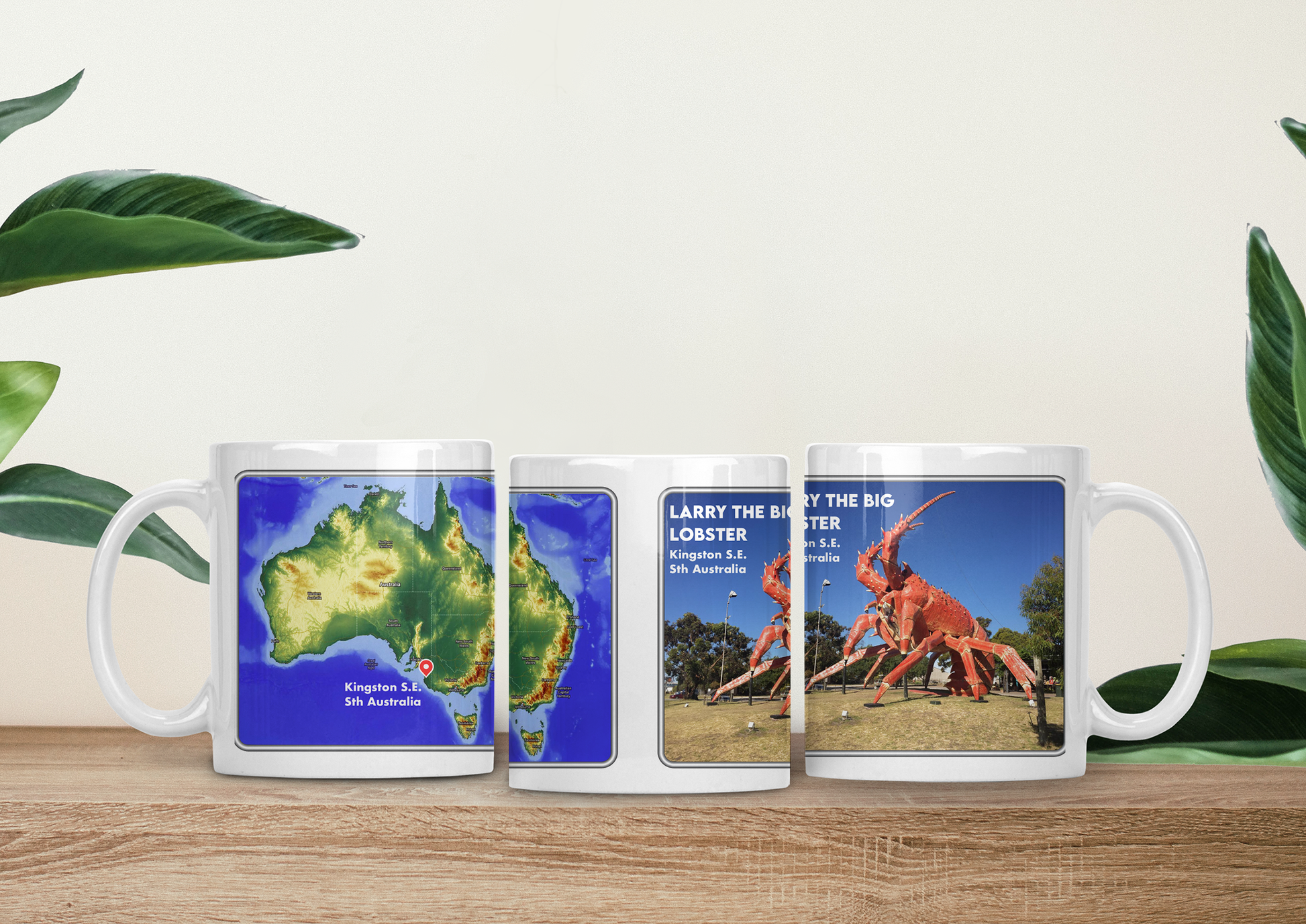 Larry The Big Lobster coffee mug depicts Larry the Big Lobster based in Kingston Se Sth Australia a major Lobster fishery and is the Biggest of all the Big Things in vivid colour. Designed and printed in Melbourne boxed and stickered it will make the perfect gift for any Big Things enthusiast or collector.